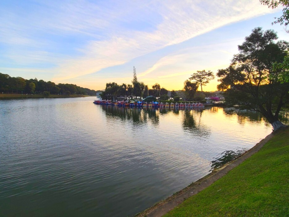 호수에는 낚시하는 강태공도 있고, 오리배를 타고 유유히 호수를 유람하는 청춘남녀의 모습도 보인다. 사랑스럽다. 호수 왼쪽에는 팰리스 골프 클럽(Dalat Palace golf club)이 소나무와 꽃나무 사이로 환상적인 코스가 보인다. 베트남 최초의 골프장인 팰리스 골프클럽은 베트남 응우옌 왕조의 마지막 황제인 바오다이 황제가 골프를 즐겼던 골프장을 베트남 골프 코스 탑 10에 선정된 명문 골프장이다.